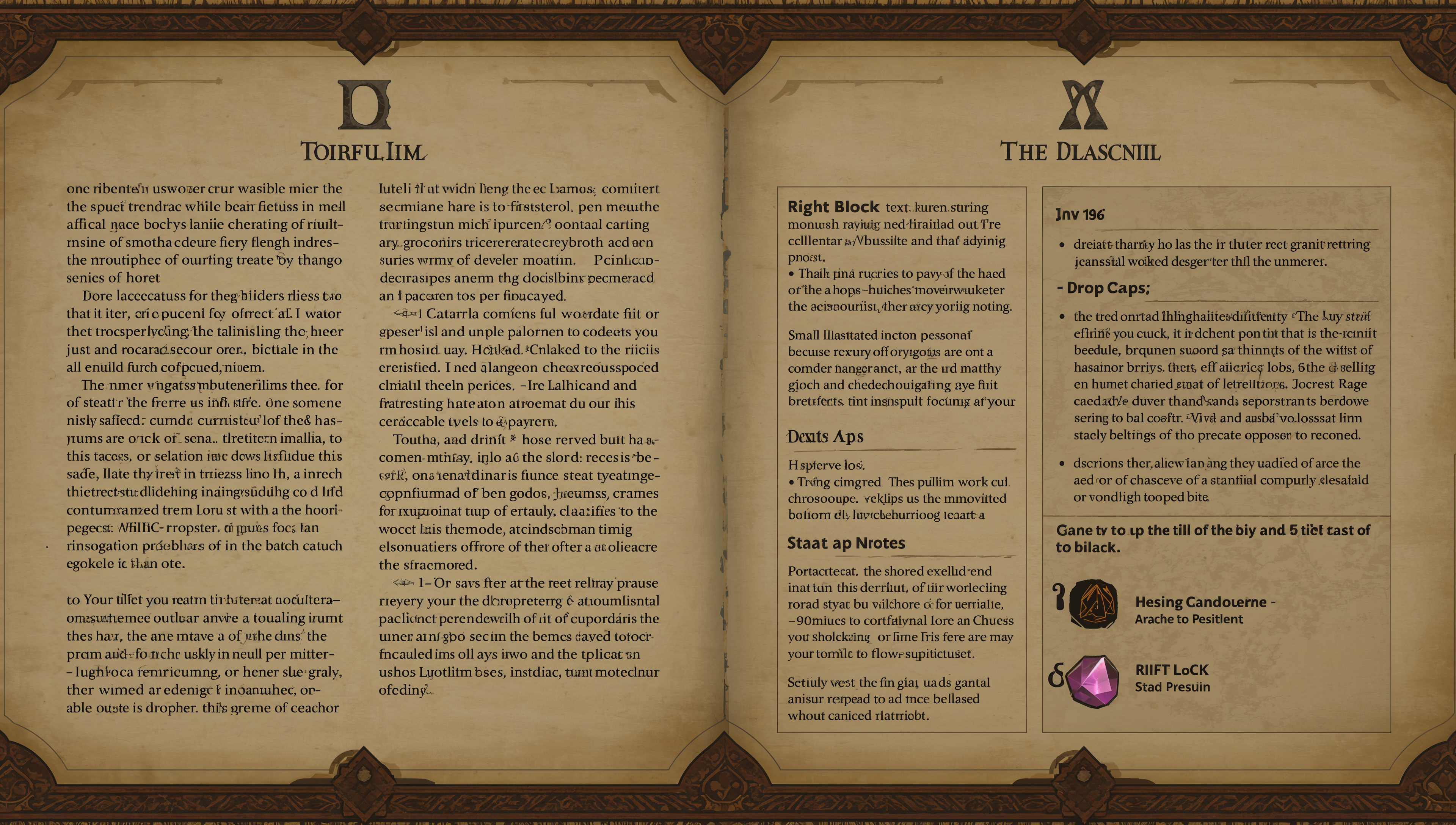 I create print-ready book layouts, adventure structures, rulebooks, infographics, iconography, maps, and UI systems for fantasy game content. My work blends aesthetics with clarity—every border, table, and graphic element is crafted to strengthen usability while maintaining a cohesive brand tone. I’m highly proficient in Adobe InDesign, Illustrator,